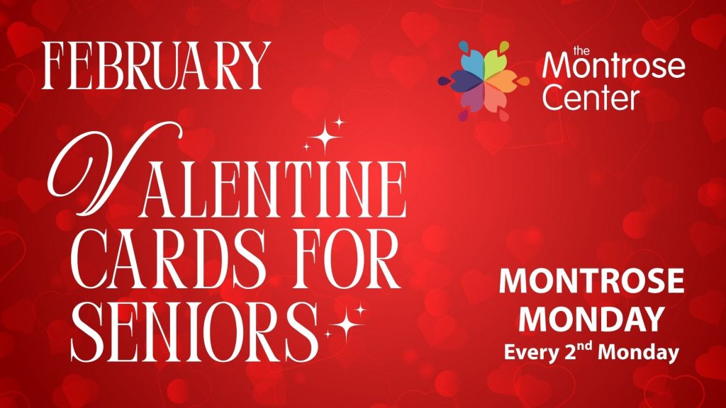 Montrose Monday is a cozy community craft night at the Montrose Center, held every second Monday of the month. This February, we’re making and writing VALENTINE CARDS to our seniors at Law Harrington Senior Center. All supplies will be provided, but feel free to bring extra materials to share with the group.