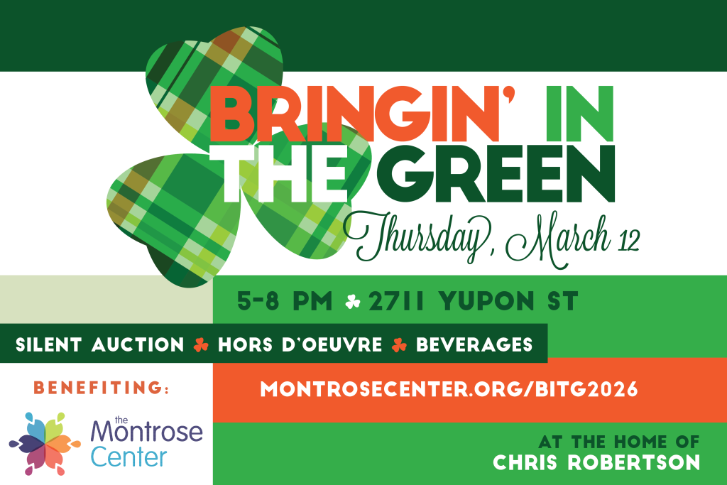 Hello, Montrose Society members! It’s time to RSVP for Bringin’ in the Green on Thursday, March 12th! This festive evening is complimentary for Montrose Society members giving at the Innovator Level or higher. Your two tickets will be emailed via our ticketing platform, where you can also Manage Your Tickets and add your guest’s details. Don’t wait – RSVP today and join us for a night of community, cocktails, and connection. We can’t wait to celebrate with you on March 12th!